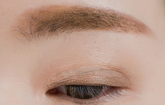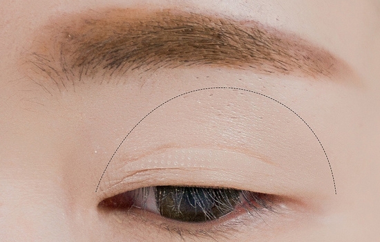 先用1号自然色在眼皮上方打底。