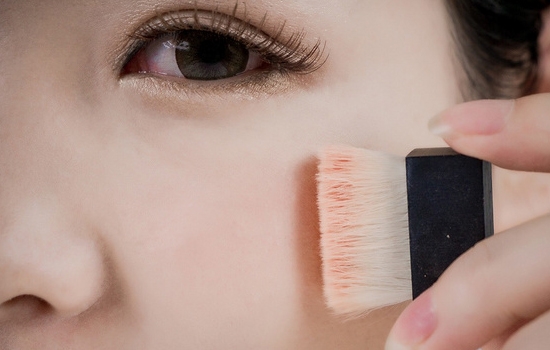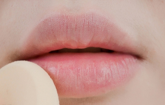 先用粉底遮盖住自己原本的唇色。