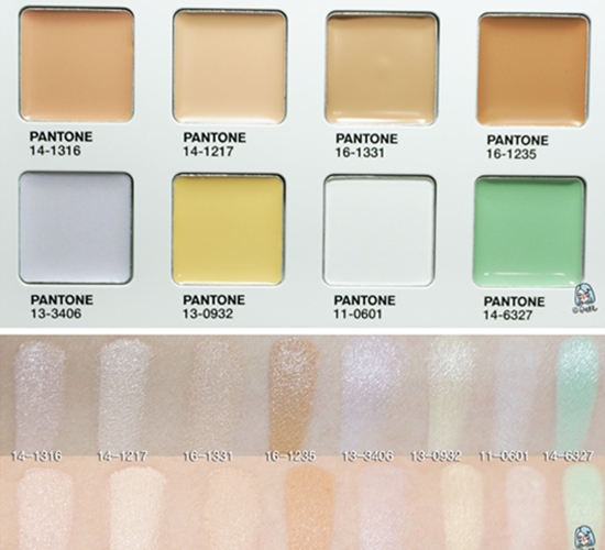 详细的试色,每个颜色可以单独使用,也可以在调色盘处混合后再使用。所有的遮瑕膏都容易推开,不像一般的遮瑕膏那么干。根据自己的需求来调出最适合自己的遮瑕吧。
