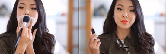同样是先涂好边缘再填满中间,不要忘记根据个人唇形做下修整。使用唇膏时为了显色,选择用唇线刷涂。