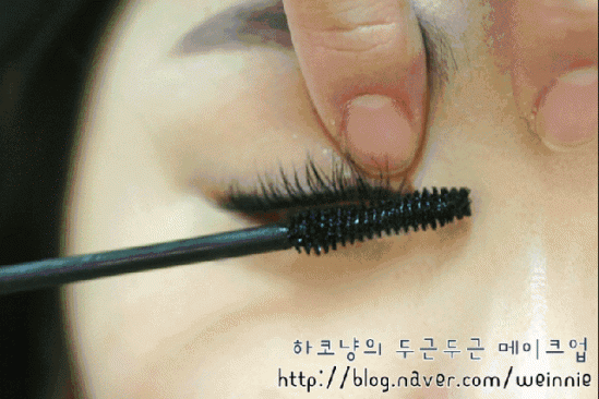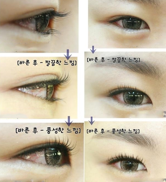 由上到下分别是裸眼—夹翘睫毛—涂上睫毛膏的侧面和正面对比图,难怪有人说,如果脸部只能选一个化妆,一定要选睫毛膏。