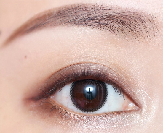 取亮片色叠在眼头部分,注意范围不要太多,不然会显得脏,然后画上棕色上眼线。