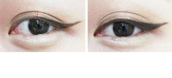 STEP11:然后继续往前画眼线,一直画到眼头为止,上外眼线一定要画的细。