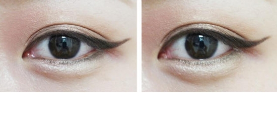 STEP9:用黑色眼线笔沿着外眼角的方向向上画出一条眼线,如图示。