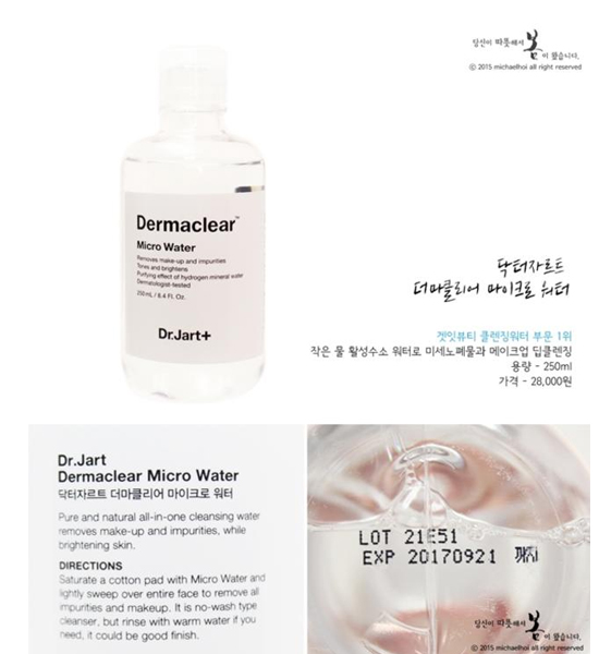 Dr.jart卸妆水,各种肌肤适用,容量250ml,售价韩币28000元,同样的透明液体。