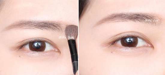 第三步:再用眉刷取比第一步浅一个色号的眉粉,对眉头位置进行晕染,使得眉毛过度自然。