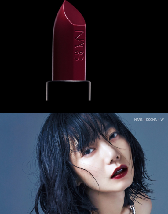 这次仿妆的海报,裴斗娜迷离的眼神,一眼就看到大红唇。使用的产品就是NARS的秋季新品唇膏VIP RED。