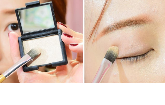 STEP4:用眼影刷蘸取米色眼影刷满整个上眼睑和卧蚕。