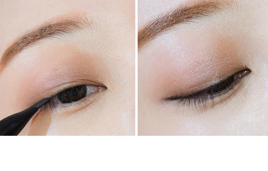 STEP6:用黑色眼线胶笔画上外眼线,眼尾自然拉长12.5px。