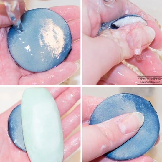 每次使用后,先用冷水大致冲洗粉扑,并用手指轻轻揉搓。注意一定不能用热水!然后在粉扑的两面都打上洁面皂,在用手指轻轻揉搓,用清水冲净。
