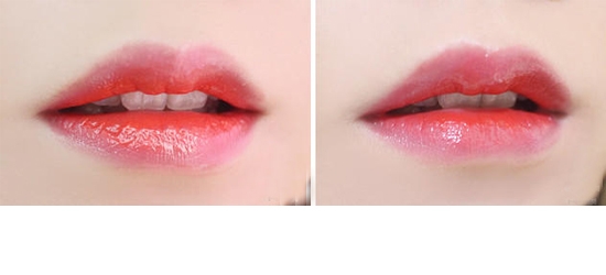 左边是倾慕液体唇膏和魅惑唇蜜搭配使用后;右边是液体唇膏和魅惑唇蜜搭配使用后;果真搭配使用后,嘴唇看起来更加丰满了!