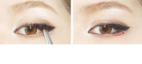 STEP16:用黑色眼线膏画在上眼睑眼尾处,如图示。