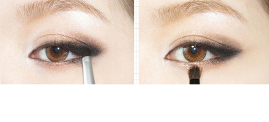 STEP18:用灰色眼影晕染黑色眼线膏。