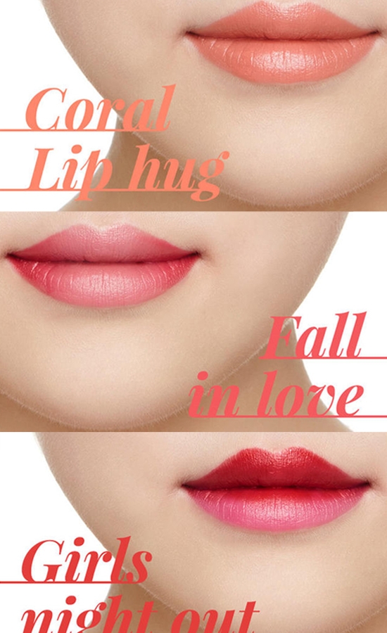 3种不同风格的唇妆:第一种珊瑚橘色温柔气质唇,第二种坠入爱河的恋爱气息唇,第三种是派对girl魅力唇。3款唇妆的妆效,每一个都美的不要不要的,很适合不会化口红的你,还能满足你的各种需要哦~