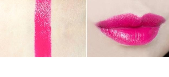 STEP5:最后的唇妆,涂抹之前使用唇膏打底润唇。以全涂的方式,将玫粉色唇膏涂满嘴唇,注意修饰唇形。