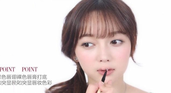 STEP1:用裸色唇膏打底,能更加突显唇妆色彩。