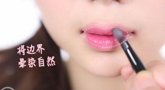 STEP3:再叠加几层,让唇膏更显色。最后用刷子将边界晕染自然。