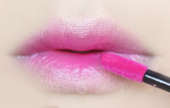 涂上一个玫红色的咬唇妆,不喜欢咬唇妆的女生可以换成唇部边缘模糊的唇妆。