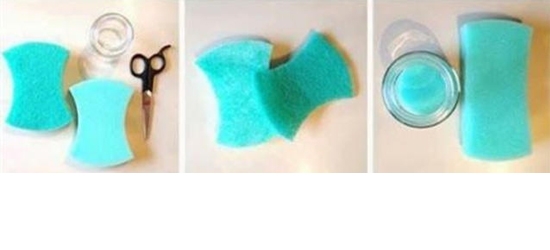 准备物:一块带海绵的百洁布,一个空玻璃瓶,一把剪刀,一瓶卸甲水。