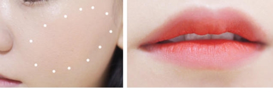 STEP9:在唇部画上橘色的咬唇妆,整个妆容就完成啦。
