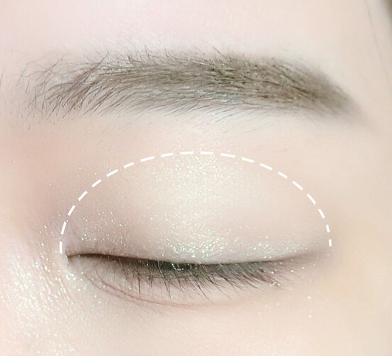 第十步:用手指沾取浅金色,涂满整个眼窝,提亮眼部。
