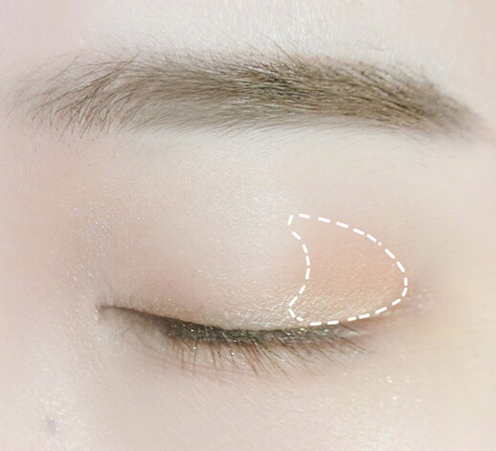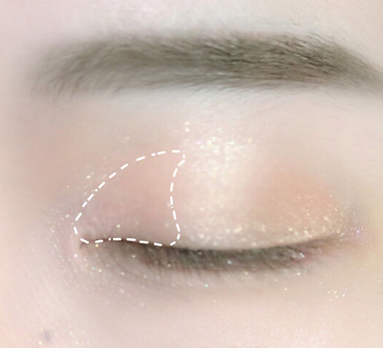 第十一步:用刷子沾取棕色眼影,刷在眼尾的地方,区域如图。