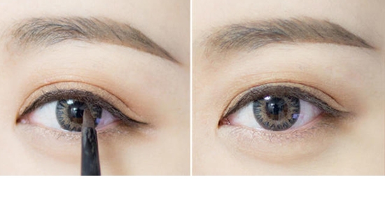 STEP4:用棕色眼线膏画上眼线,眼尾自然拉长5mm。