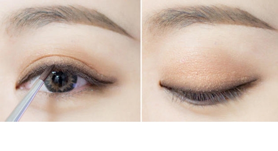 STEP6:然后把棕色眼影自然晕染开,宽度不要超过双眼皮褶皱。