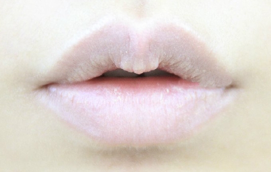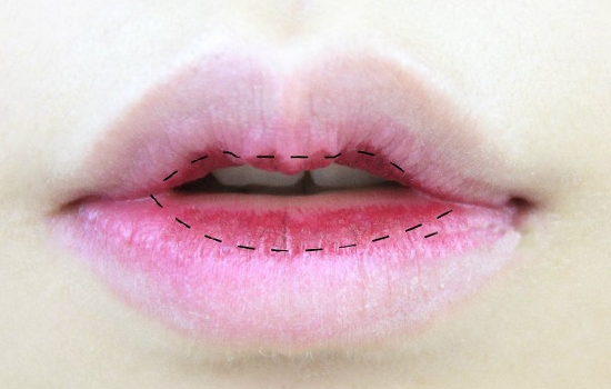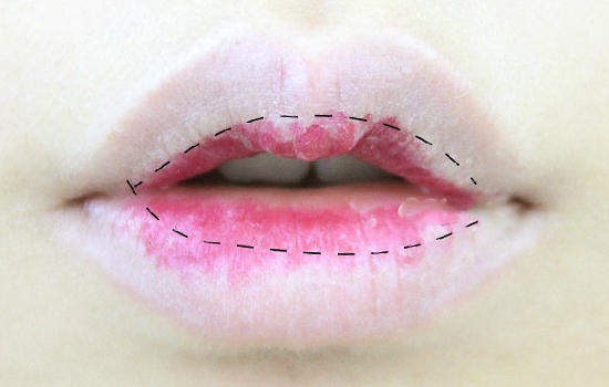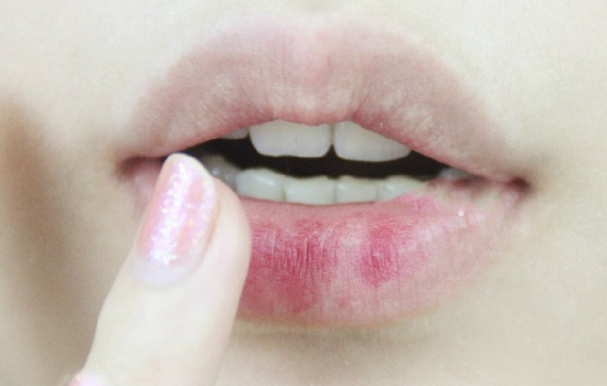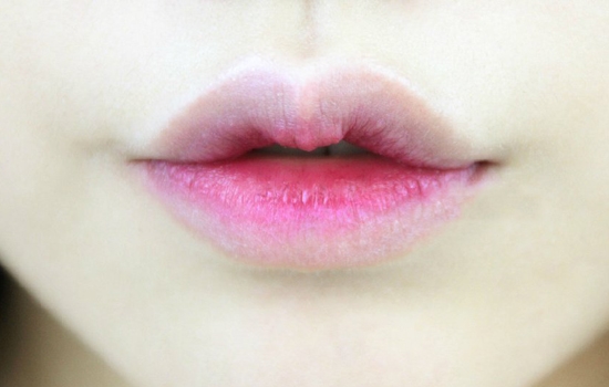 第一步:唇部护理后,用粉底液或唇部遮瑕膏涂抹、拍打,遮盖原本唇色。