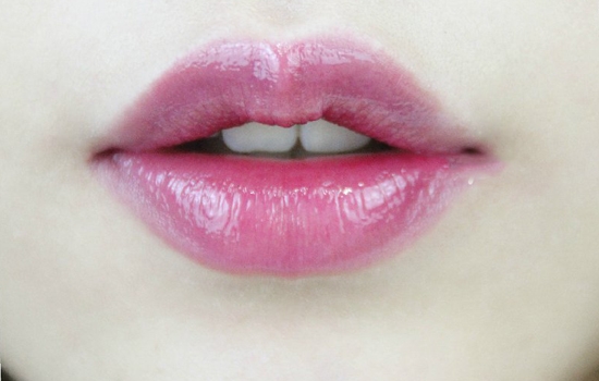 第二步:叠加同色或透明的唇蜜,只想有光泽感的只涂在上下唇部中央,丰唇的玻璃唇效果就涂满即可。