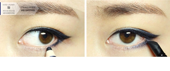 STEP5:用蓝色眼线笔贴着睫毛根部画上外眼线,眼尾不要拉长。