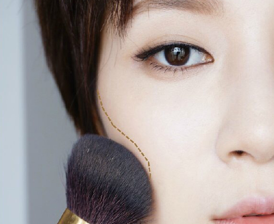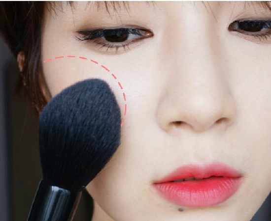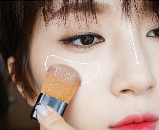 第十六步:将修容粉刷在下颧骨下方,使苹果肌形状更加明显。
