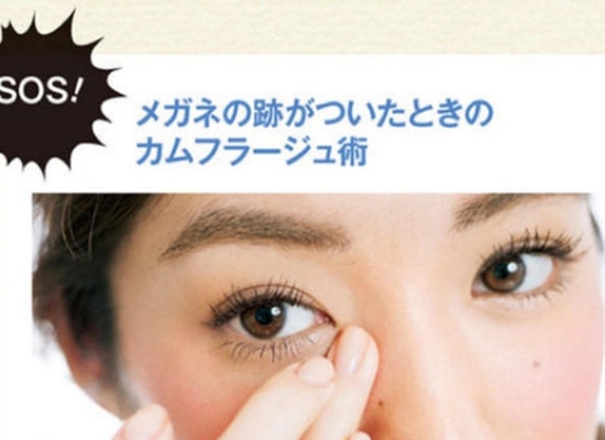 为了预防眼镜留下的痕迹,可以选择质地较厚实的遮瑕膏,用指腹蘸取涂抹。