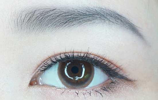 第六步:珠光深棕色眼影,眼尾上翘,向眉尾处晕染。