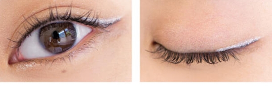 重点:用银白色眼线液描绘在眼尾后半段,微微拉长,能让眼睛更明亮。