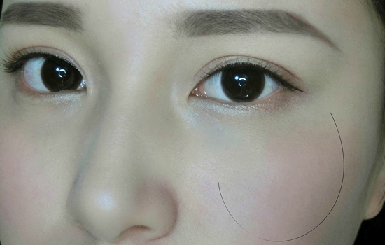 第八步:圆圆的腮红刷,打圈方式上腮红,稍微重一点加深可爱感,高光叠加在腮红上,凸显光泽感。