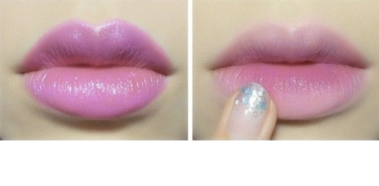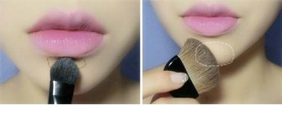 STEP7:用桃粉色的唇膏涂唇部,整个妆容会粉嫩嫩的,画完之后擦去周围的边缘变成咬唇效果。
