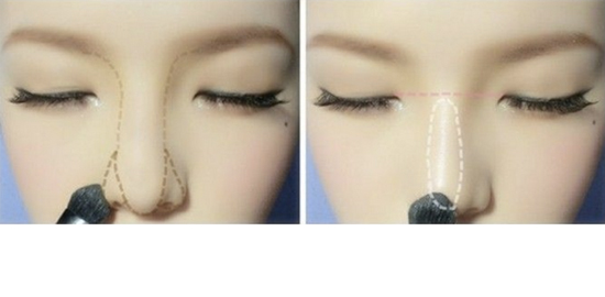 STEP9:继续在鼻翼部刷深色修容,鼻梁用高光修容。