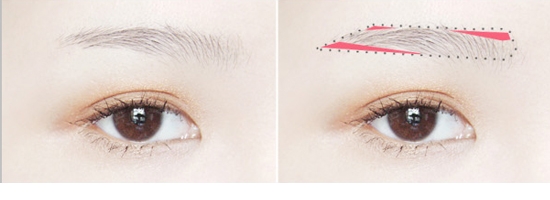 STEP2:根据眉型比对一下一字眉,红色区域就是需要填补的部分。