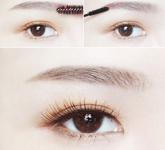 STEP7:最后,用染眉膏定型染色,黑发可以用半干质地的睫毛膏来刷。(一定要有半干质地或快干掉的睫毛膏,避免太浓或结块。)