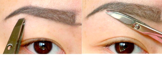 步骤九:修剪眉毛。把确定的眉型外面的眉毛修剪掉,太长的眉毛,用小剪刀剪掉长出的部分。
