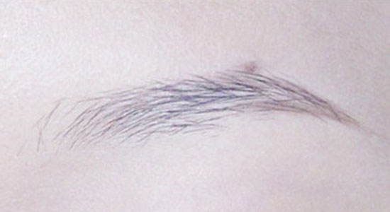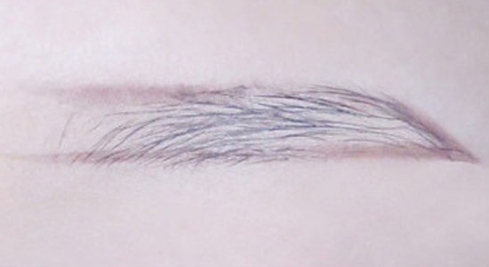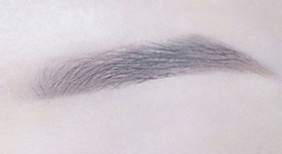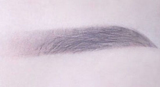 第二步:眉毛上下沿着自己的眉形,描出两条线,然后填色,从眉尾开始越往前画,颜色越淡。这样的画法会比较自然。