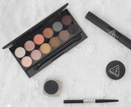 SLEEK眼影盘、3CE双头睫毛膏、3CE眼线膏、3CE眼影膏、KATE超细芯眉笔。