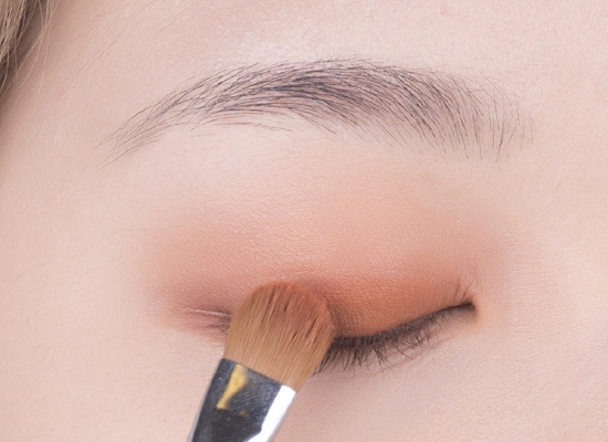 在上眼皮叠加多一次铜棕色,眼影的重点放在眼皮中央位置。