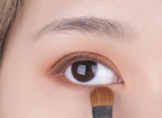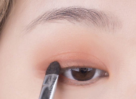 小号刷沾取哑光巧克力色眼影,晕染在靠近睫毛处。