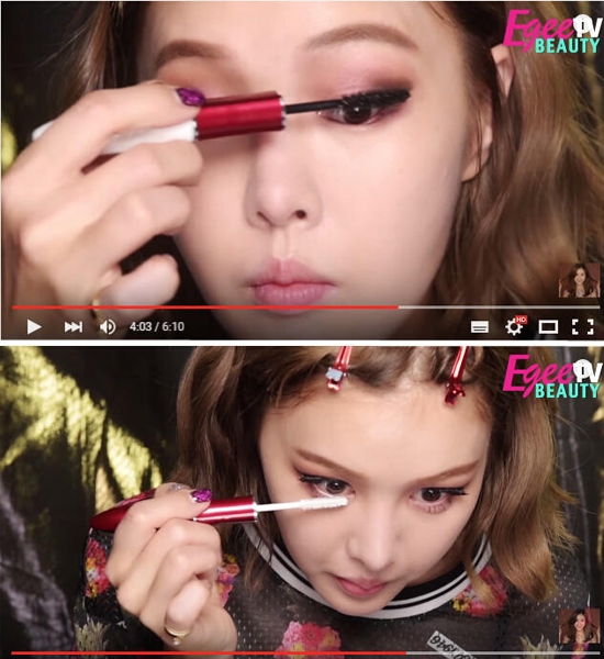 STEP18:用黑色睫毛膏从睫毛根部向上涂抹睫毛,打造浓密睫毛。