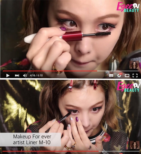 使用产品:欧莱雅惊艳睫毛膏,黑色;MAKE UP FOREVER艺术专家眼线笔,M-10