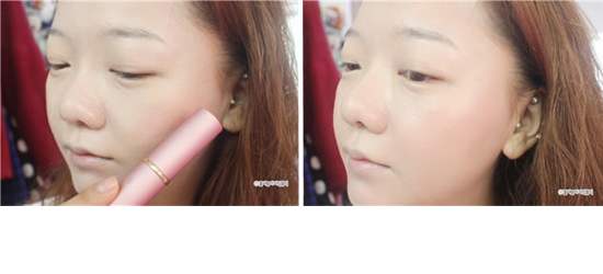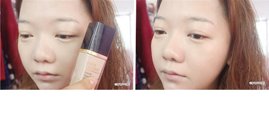 STEP1:先把粉底液均匀涂抹在整个脸部,打造白嫩肌底。