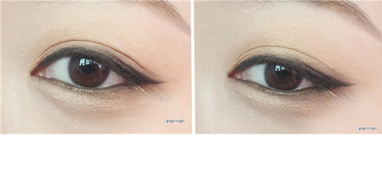 STEP8:用黑色凝胶眼线笔沿着睫毛根部描画上下眼线,上眼线眼尾稍微上翘一点儿。