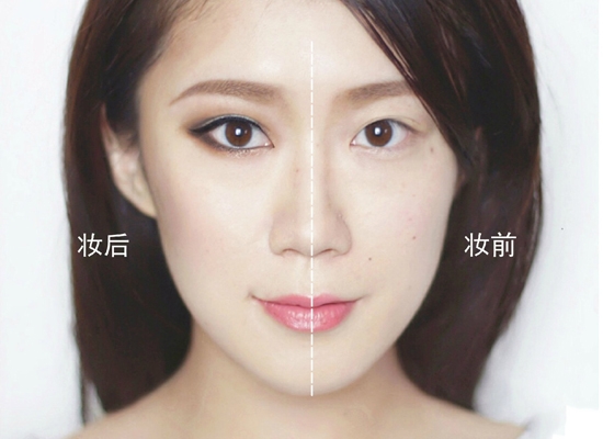 妆前的眼睛是典型的亚洲人眼睛的扇形双眼皮,但妆后巧妙地利用眼影阴影的打造,可以画出一个欧式双眼皮!